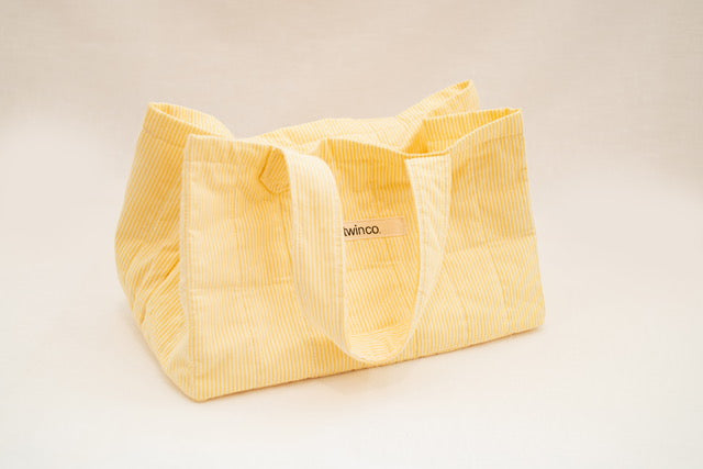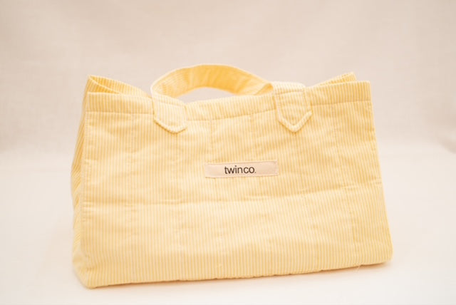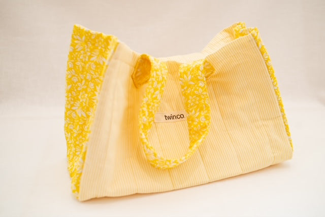 Bolsinha em tecido 100% algodão, com um mix de estampa listrada e florida.