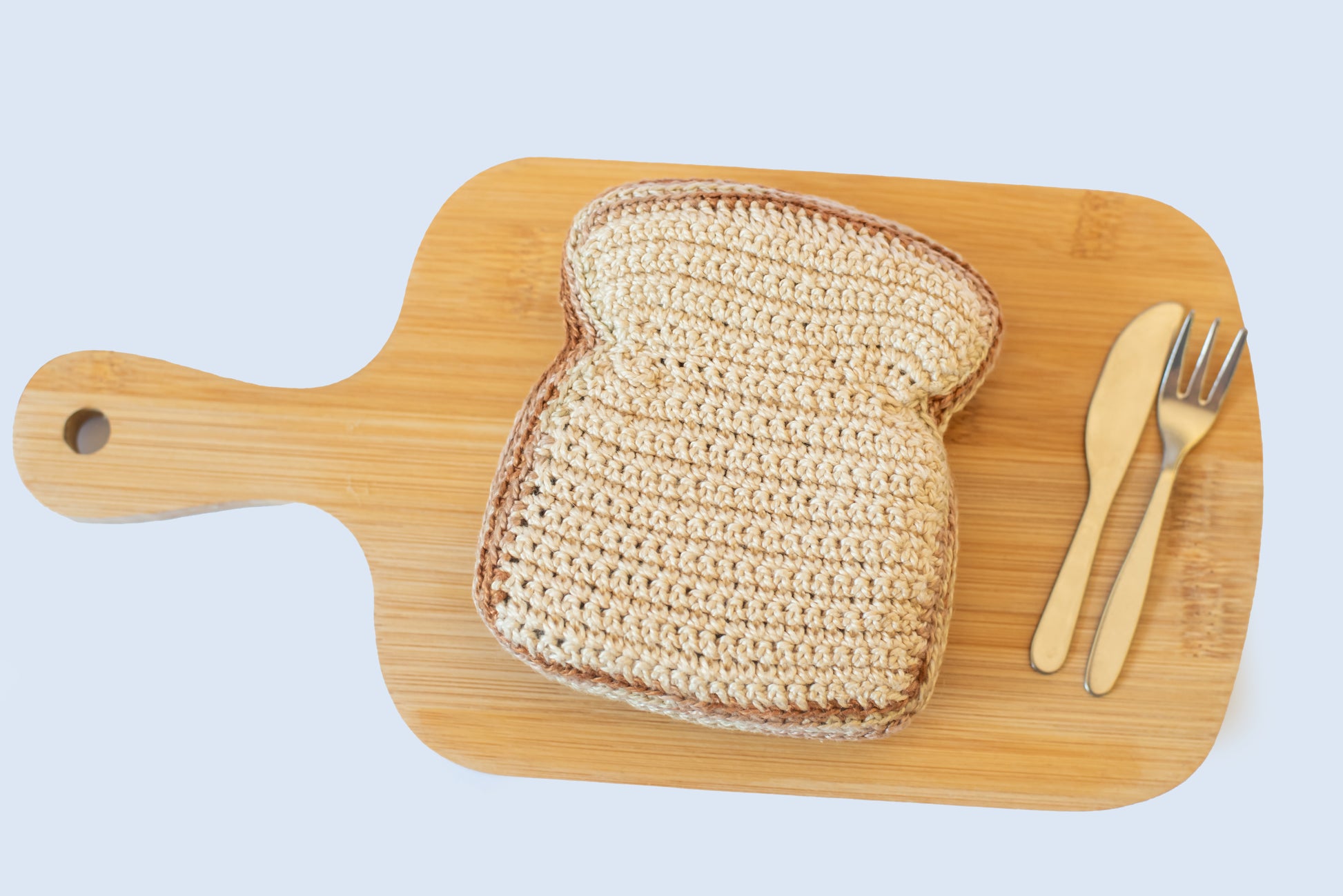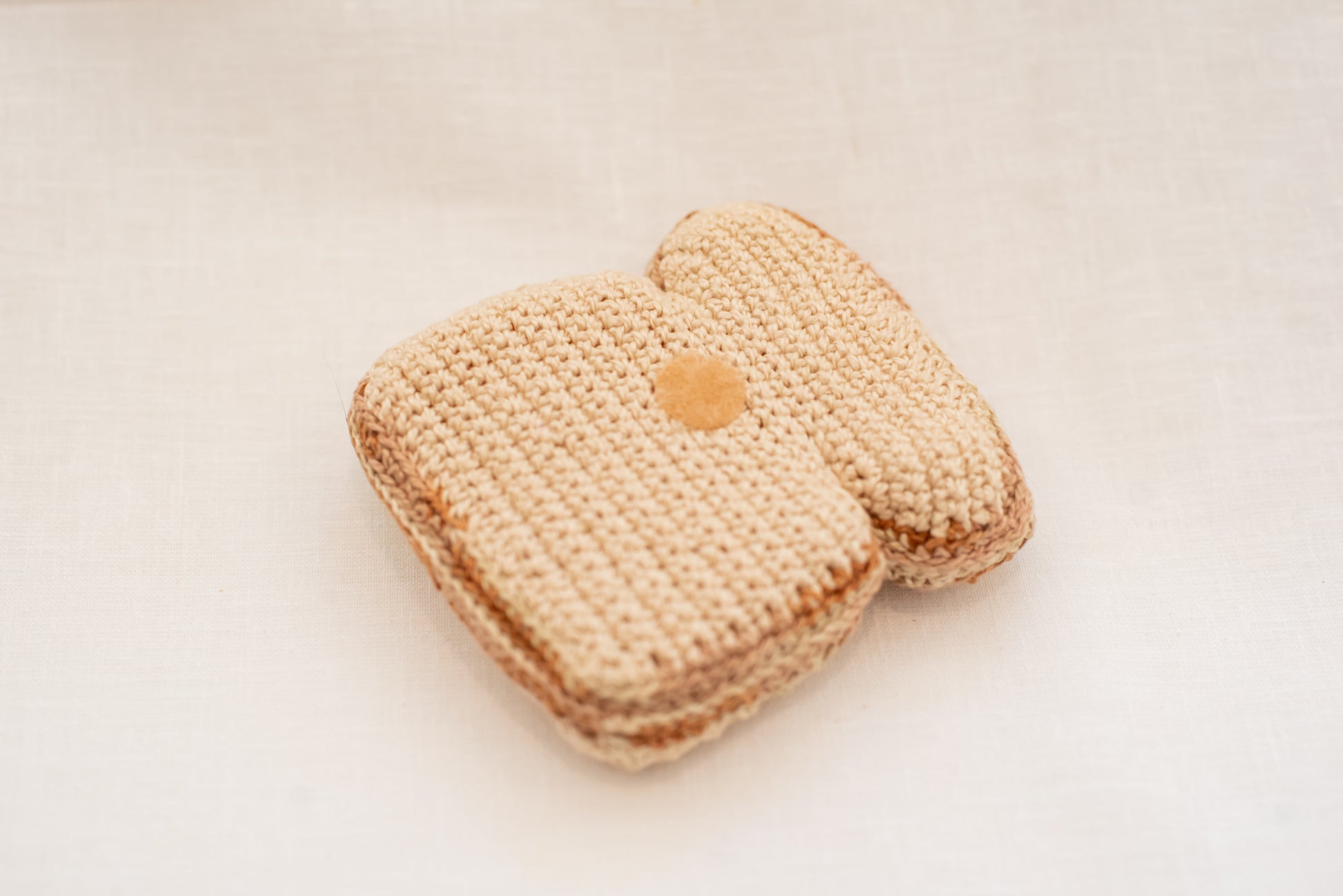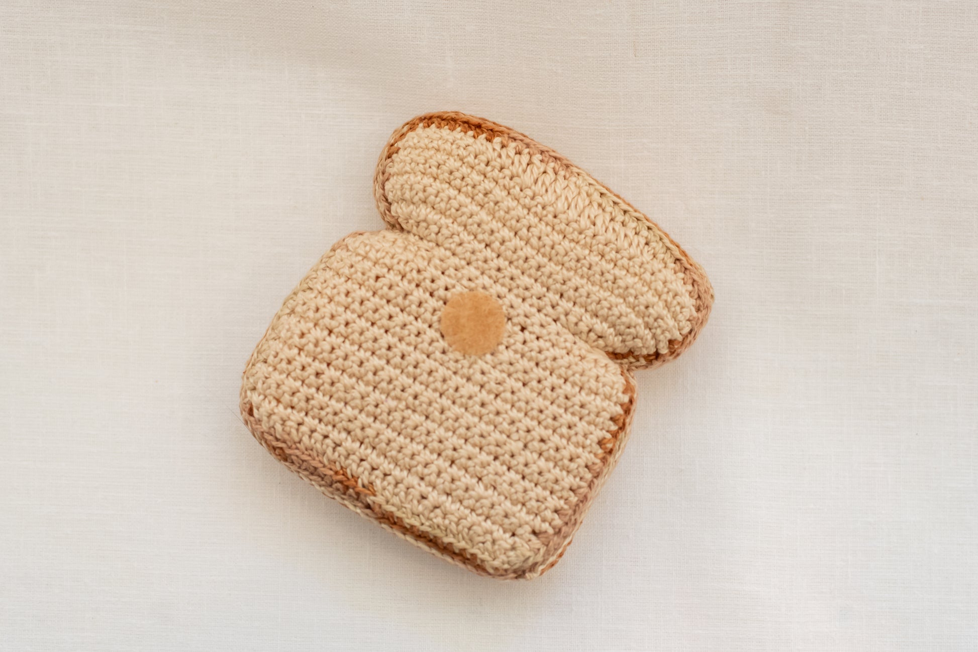 Torrada integral de crochê (possui velcro para unir a outros produtos da marca, como o bacon)